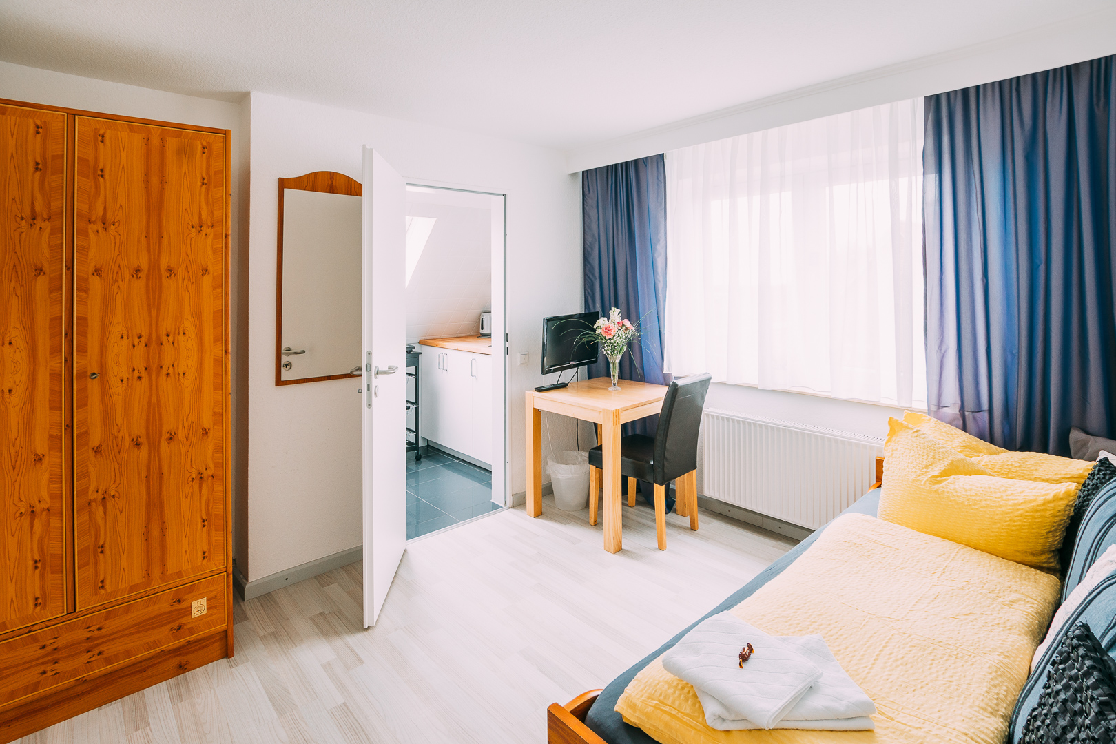 Die Appartment-Suiten wurden in 2021 bzw. 2022 neu errichtet, sind ebenfalls sehr hell und freundlich eingerichtet und mit einem Sekretär/Arbeitsplatz ausgestattet. FRÜHSTÜCK kann ggf. hinzugebucht werden.